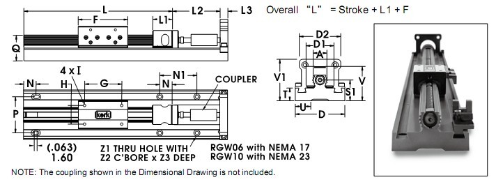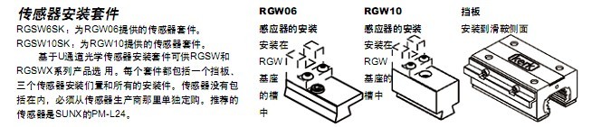 | RGS®滑轨的RGW系列配置简化了电机和限位开关传感器的安装.两个系列都带有安装传感器支架的插槽以及滑鞍的安装档板部件. RGM还包括一个电机的安装支架. 电机、联轴器和传感器不是标准附件,通用光学传感器的安装套件是标准附件。(见传感器安装套件) |
