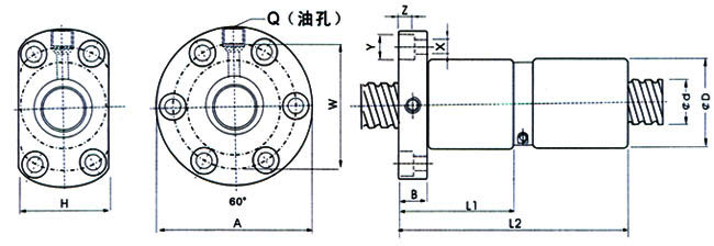 I:导程 Da:珠径 n:珠圈数 K:刚性(Kgf/μm)L:SFE螺母长度 Ca:动额定负荷(Kgf) Coa:静额定负荷(Kgf)