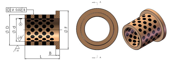 | SBCOGF 铜合金带挡边自润滑轴套尺寸表 |