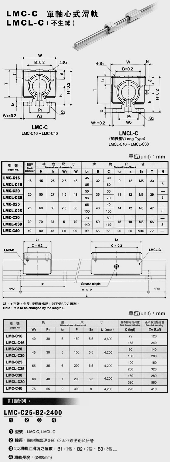 LMC-16轴承、LMCL-C16轴承、LMC-C20轴承、LMCL-C20轴承、LMC-C25轴承、LMCL-C25轴承、LMC-C30轴承、LMCL30轴承、LMC-C40轴承|滑块轴承