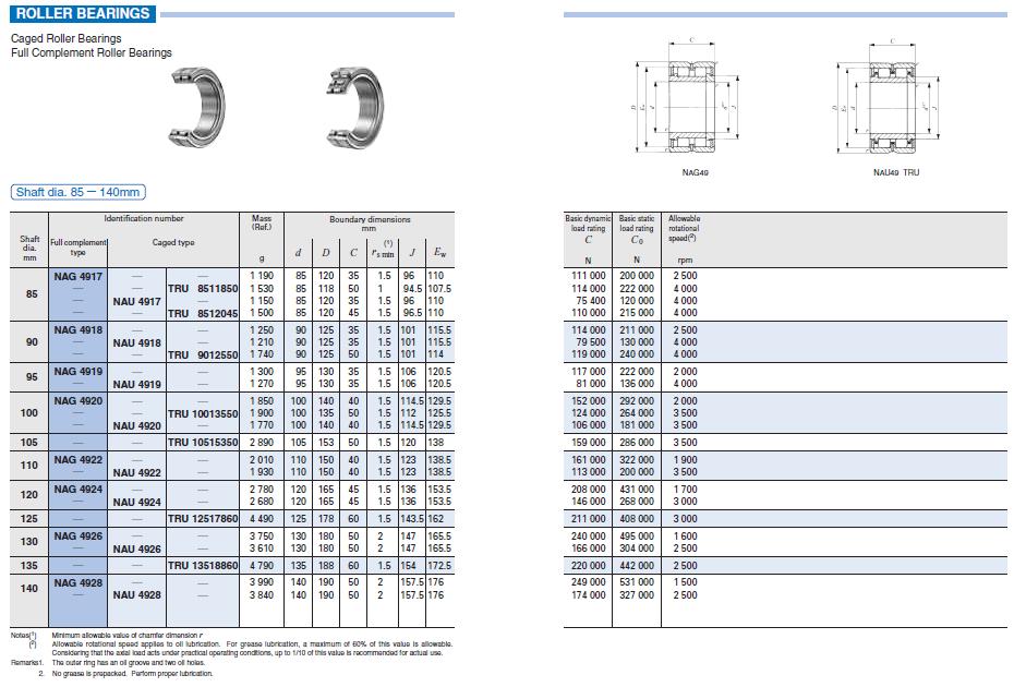 NAG4917轴承、NAU4917轴承、TRU8511850轴承、TRU8512045轴承、NAG4918轴承、NAU4918轴承、TRU9012550轴承、NAG4919轴承、NAU4919轴承、NAG4920轴承、NAU4920轴承、TRU10013550轴承