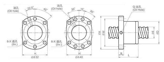 l:导程 Da:珠径 n:珠圈数 K: 刚性(kgf/μm) Ca: 动额定负荷(kgf) Coa: 静额定负荷(kgf) 备注:标记★可制作左螺纹 | |