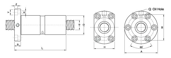 l:导程 Da:珠径 n:珠圈数 K: 刚性(kgf/μm) Ca: 动额定负荷(kgf) Coa: 静额定负荷(kgf)