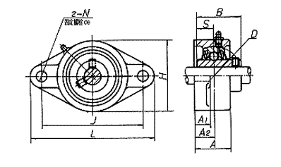 注:  根据国际《GB/T7810》,该型座配以UEL200型轴承或UK200+H2300型轴承,可装配成为带菱形