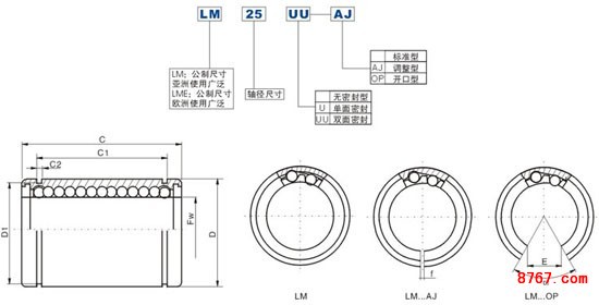 LM80UU直线轴承、LM80-AJ直线轴承、LM80-OP直线轴承