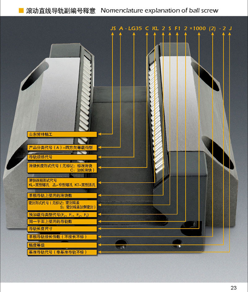 博特精工滚动直线导轨副编号释义JSA-LG15滑块、JSA-LG20滑块、JSA-LG20滑块、JSA-LG25滑块、JSA-LG25滑块、JSA-LG30滑块、JSA-LG30滑块、JSA-LG35滑块、JSA-LG35滑块、JSA-LG45滑块、JSA-LG45滑块、JSA-LG55滑块、JSA-LG55滑块、JSA-LG65滑块、JSA-LG65滑块
