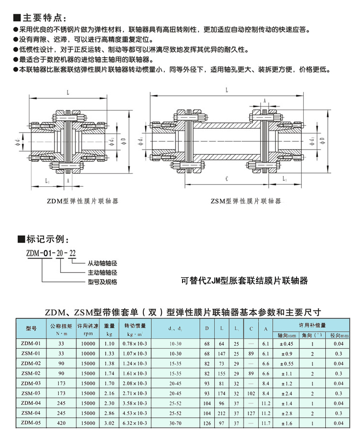 带锥套膜片联轴器ZDM-01、ZDM-02、ZDM-03、ZDM-04、ZDM-05、ZSM-01、ZSM-02、ZSM-03、ZSM-04、ZSM-05