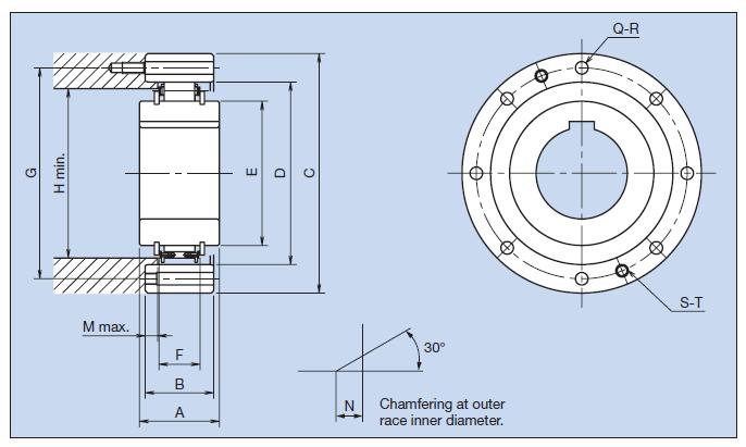 4.如果您先安装外圈,请检查配合精度。外圈安装的公差见右表。请验证能够获得的正确公差。违反安装说明的安装将损坏凸轮离合器。