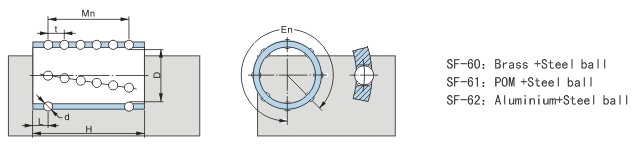 传统的具有相对运动的孔与轴是有一定间隙的,并孔与轴之间的运动摩擦系数较大,使用钢球保持圈后,使轴与孔不直接接触,而是中间通过有微量过盈的钢球,因而运动精度高,滚动摩擦代替了滑动摩擦,滚动灵活,摩擦系数小,使用寿命长、在既有转动、又有移动的场合,用无油或加油的轴套与轴相配,虽然能满足,但运动精度较低,用滚动轴承,只能满足轴相对转动的场合,而钢球保持圈,则上述二个条件均满足,目前已广泛应用于冷冲模架、高精度机床、机床附件以及要求高精度轴向或轴径向同时运动场合。 As the traditional work-craft has some grudge between bushing with posts, and the coefficient of friction is larger, now we have changed the work-ways to steel-ball directly face to face guide bushing, so the precision is machine, die machine, high precision machine which need rotation and vertical motion.