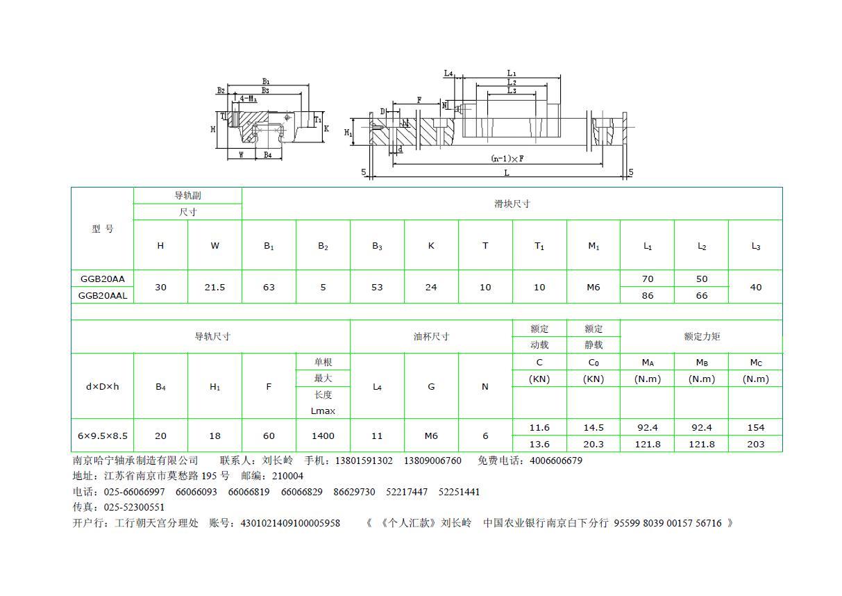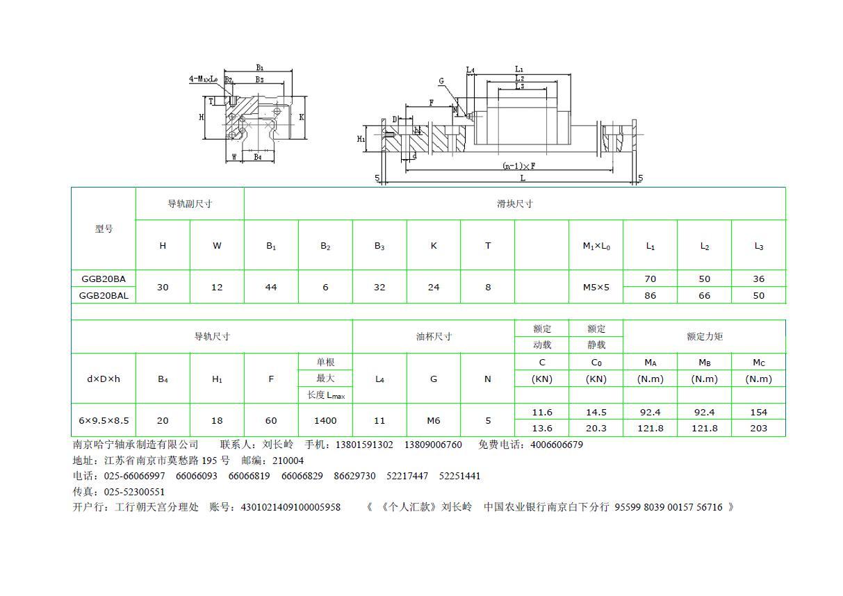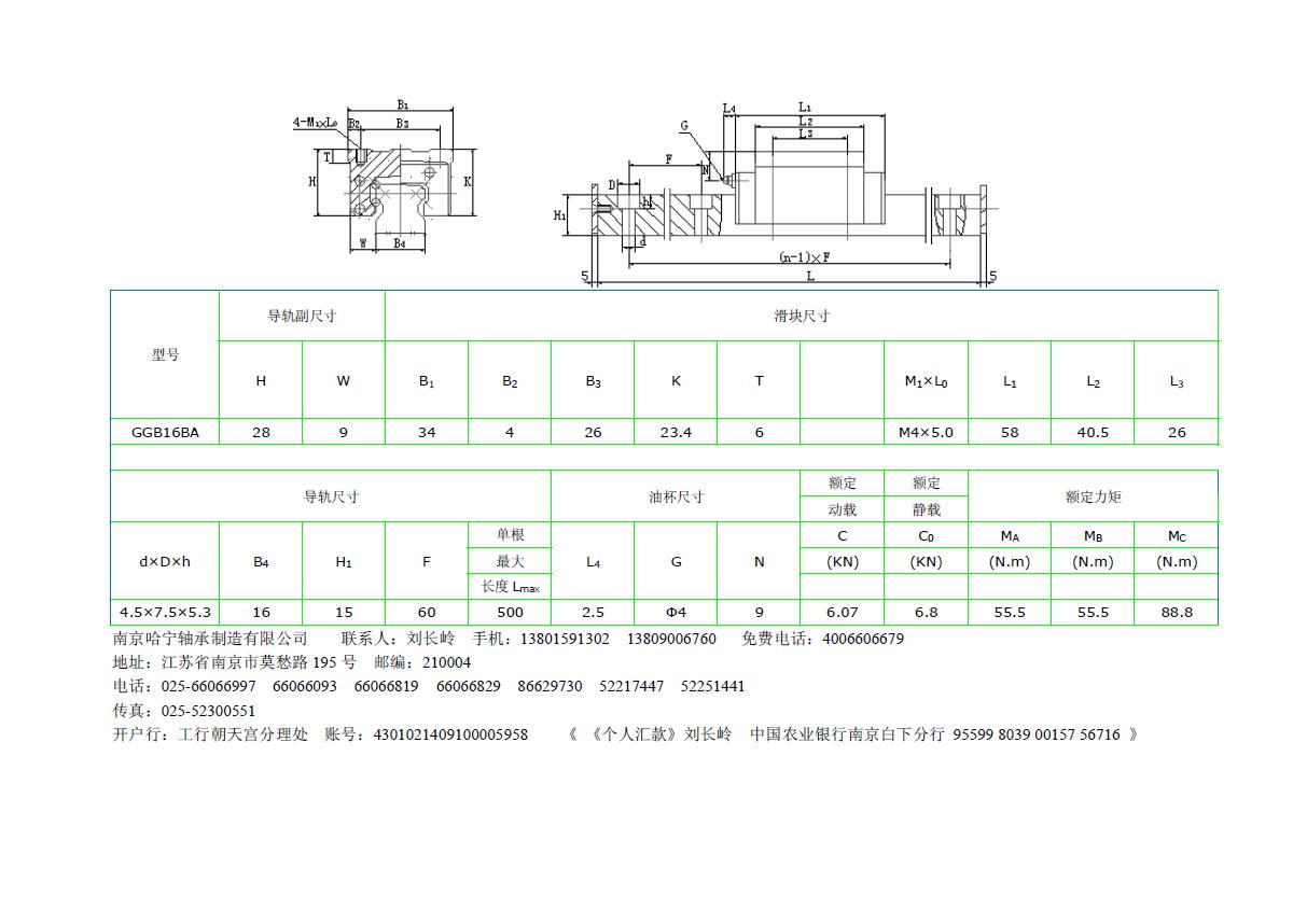 单位汇款资料:南京哈宁轴承制造有限公司 开户行及帐号:工行朝天宫分理处4301021409100005958