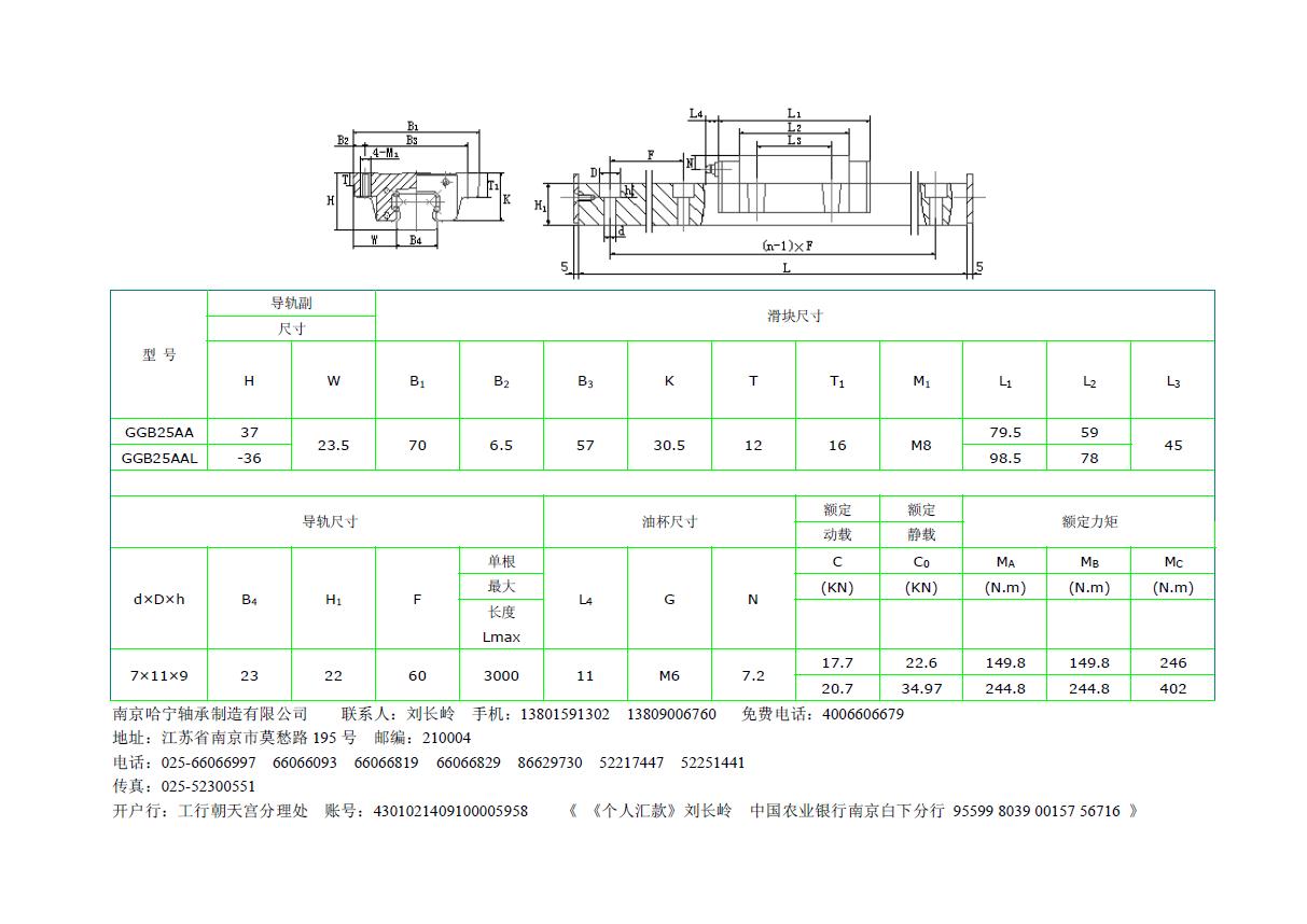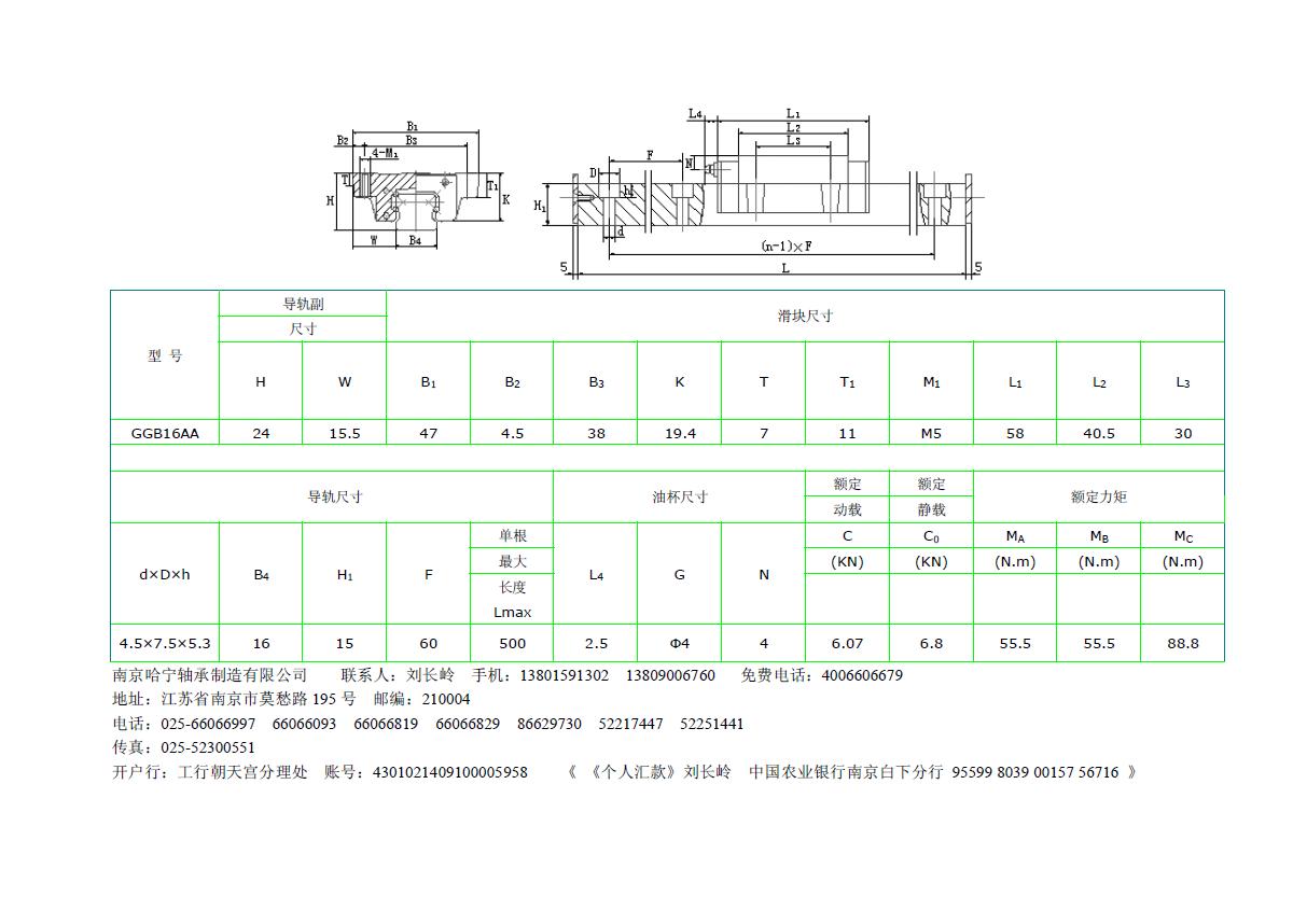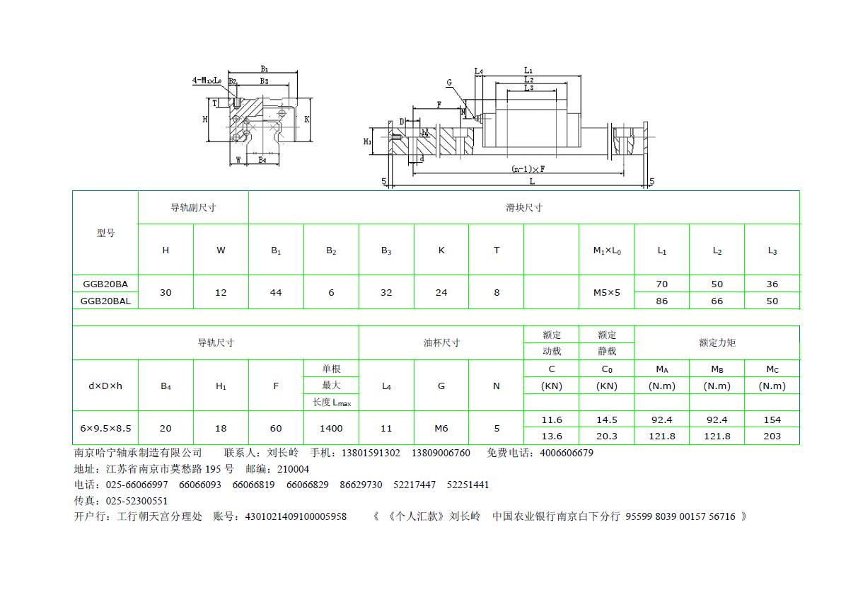 单位汇款资料:南京哈宁轴承制造有限公司 开户行及帐号:工行朝天宫分理处4301021409100005958